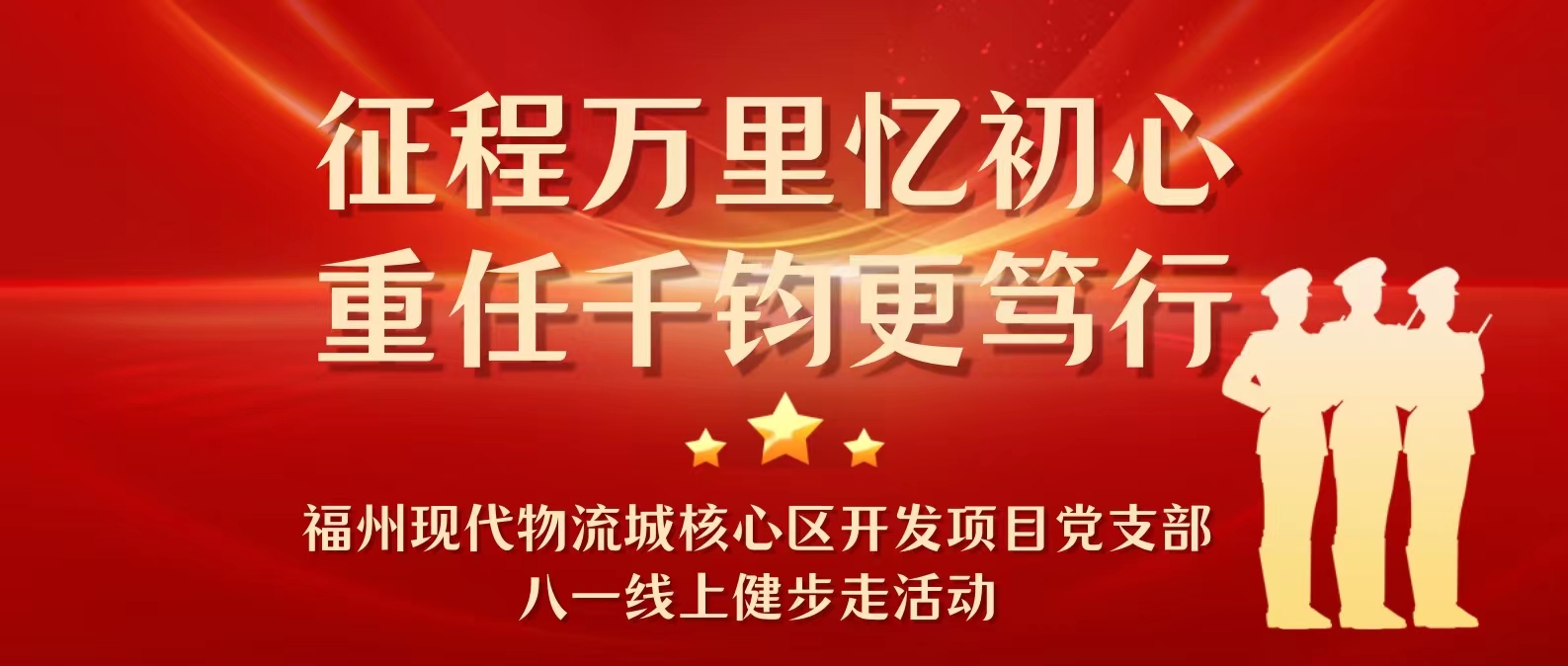 活动以建军重大历史事件为主线,用“互联网+运动+文化”的方式将徒步健身与革命教育相结合,在挑战中学习革命历史,体会中国共产党带领中国人民骁勇善战、坚忍不拔的精神,同时激励广大职工要有敢于吃苦、不惧艰难的革命乐观主义,勇于战斗、无坚不摧的革命英雄主义,重于求实、独立自主的创新胆略和善于团结、顾全大局的集体主义,在昂首奋进的路上开创出美好的未来。活动举行时间: 2023-07-29 00:00:00 到2023-08-02 23:59:59