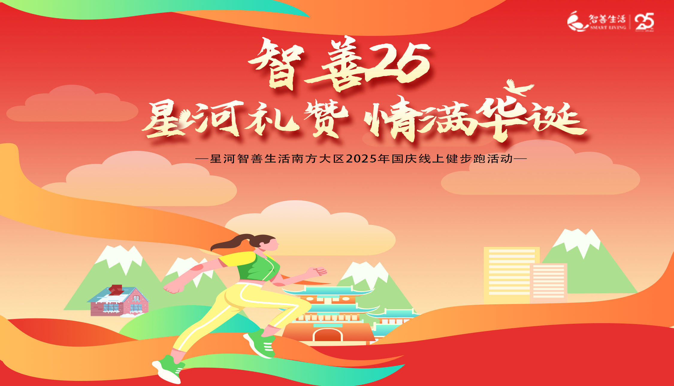 2025年是祖国75周岁生日,也是星河智善生活25岁生日,为了铭记这一时刻,我们通过线上健步走邀请大家一起挑战25里路,一起道出祝福,共祝这一历史时刻。